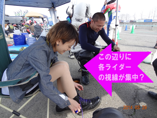 そしてサーキットへ。レース前に皮むきをすませておきます。タイヤウォーマーを使っているライダー多かったです。いつかは欲しいアイテムですが、発電機も必要になるのでまだ先ですね。冬場は本当に欲しくなりますが。